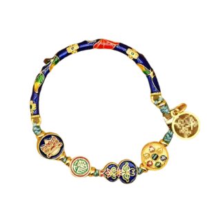 HannaFires Cloisonné “Fu” Charm Bracelet – Authentic Beijing Temple Style, Incense Ash Enamel, Semi-Bangle with Six-Word Mantra, Gourd Symbol for Blessings & Prosperity, Feng Shui Gift (BLUE)